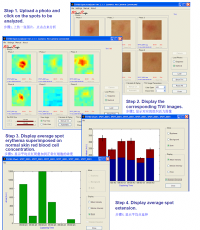 通過對比不同時間內斑點皮膚紅細胞濃度的變化趨勢來判斷產品的使用效果或對皮膚的敏感性。