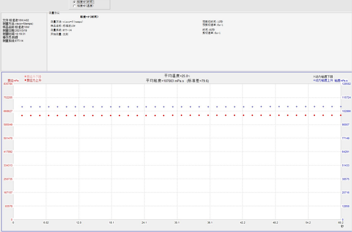 | 測試方法:6S-1,@25℃,預剪切10秒,測試60秒,使用第三方標準液標準值:106080mPa.s(誤差+/-1%), | |||||||