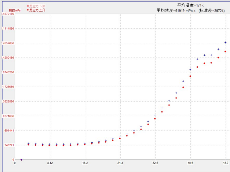 曲線稍微降低到最低點(diǎn)(出現(xiàn)最低粘度的時(shí)間點(diǎn)),后開始緩慢升高到快速升高直到開始出現(xiàn)平直時(shí)開始固化(開始固化的時(shí)間點(diǎn))。
